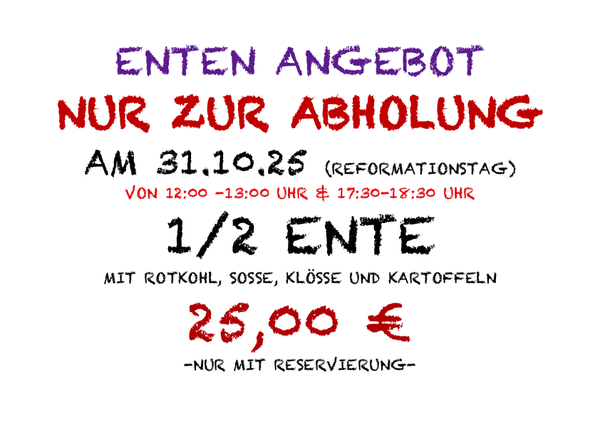 Speisekarte > Essen > ENTEN ANGEBOT AM 31.10. ZUM ABHOLEN