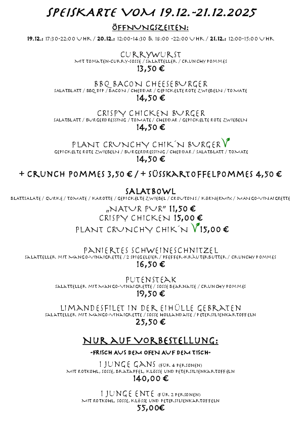 SPEISEKARTE VOM 19.12.-21.12.2025
